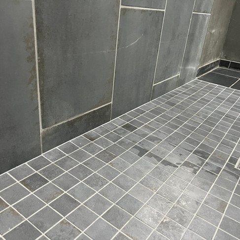 Poser au sol de la mosaïques, le tout collé et jointé à la l'époxy blanc pour une étanchéité parfaite.